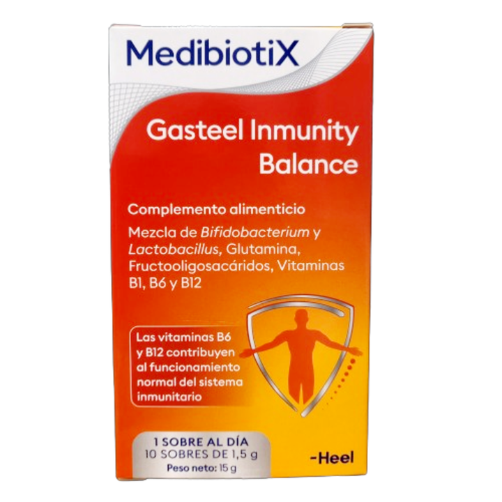Descripción del producto: Medibiotix Gasteel Balance es un complemento alimenticio diseñado para promover el equilibrio y la salud digestiva. Cada sobre contiene ingredientes seleccionados que contribuyen a la regulación del tránsito intestinal, lo que lo hace ideal para personas que buscan mejorar su bienestar digestivo.